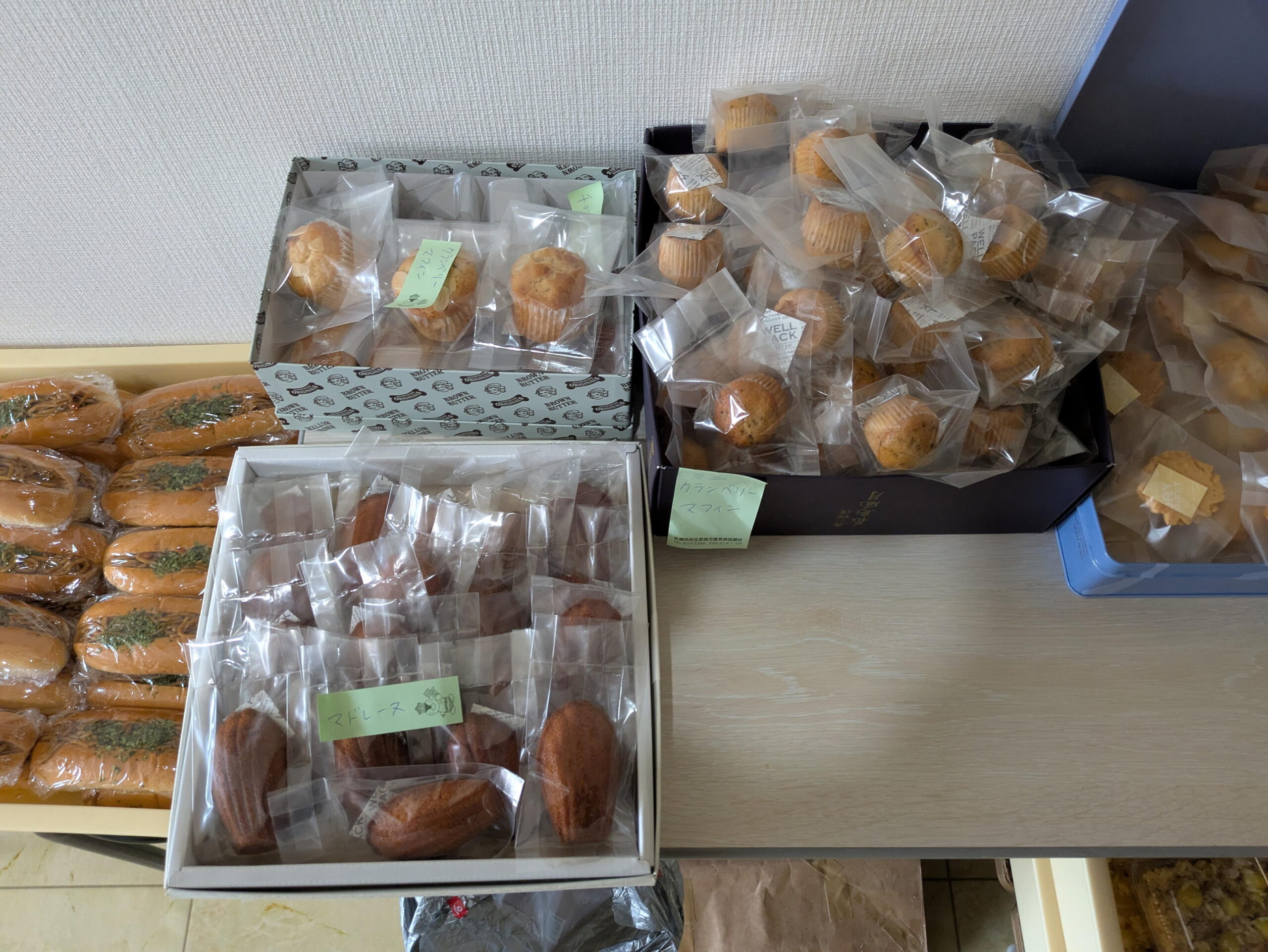プログラム終了後は、物品バザーとお持ち帰り用の手作り食品バザー(銀杏ご飯、焼きそばパン、たまごサンド、どらやき、マフィン、マドレーヌなどなど)が開かれ、いずれも大好評だった。