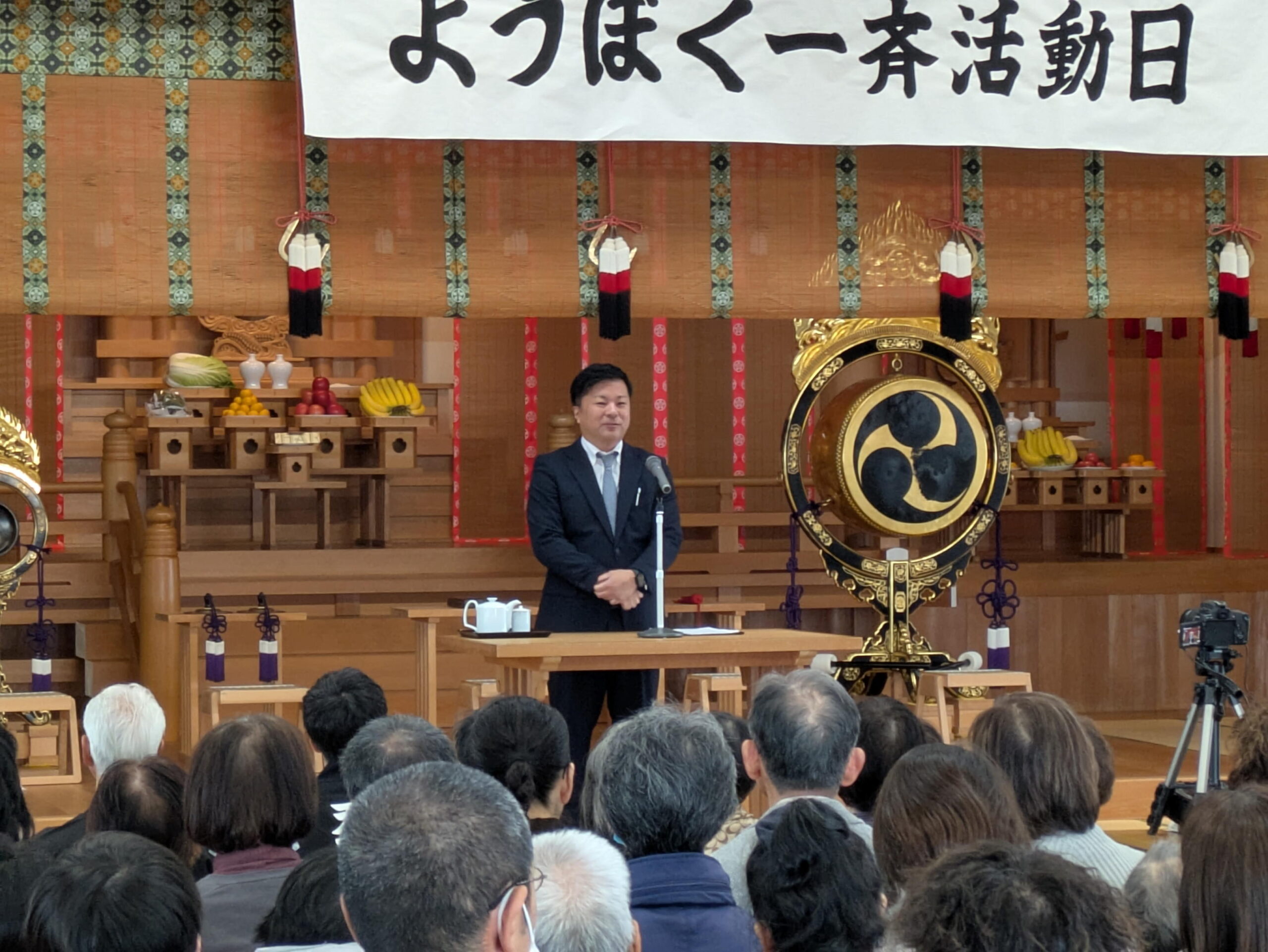 また、本当のたすかりとは、身上や事情を通して、心を入れ替え、毎日誰を見てもおたすけできる喜んだ心になることであり、にをいがけは相手だけでなく、何よりも自分自身の運命を必ず陽気ぐらしへと導き、私たちようぼくは謙虚な低い心を心がけ、つとめるべきと述べた。
