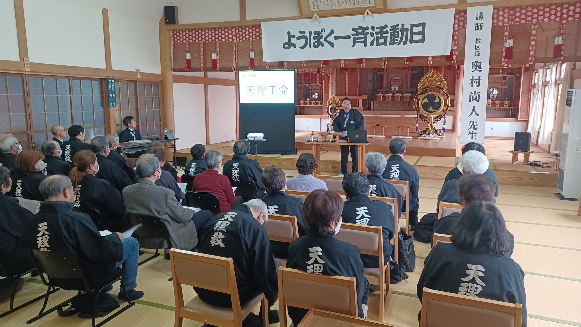 2025年11月13日 富良野支部 第5回ようぼく一斉活動日 11月2日、上富良野分教会にて、富良野支部第5回ようぼく一斉活動日が開催された。 おつとめ、諭達拝読、本部ビデオメッセージの視聴の後、北海道教区長をお招きし、お話を頂いた。